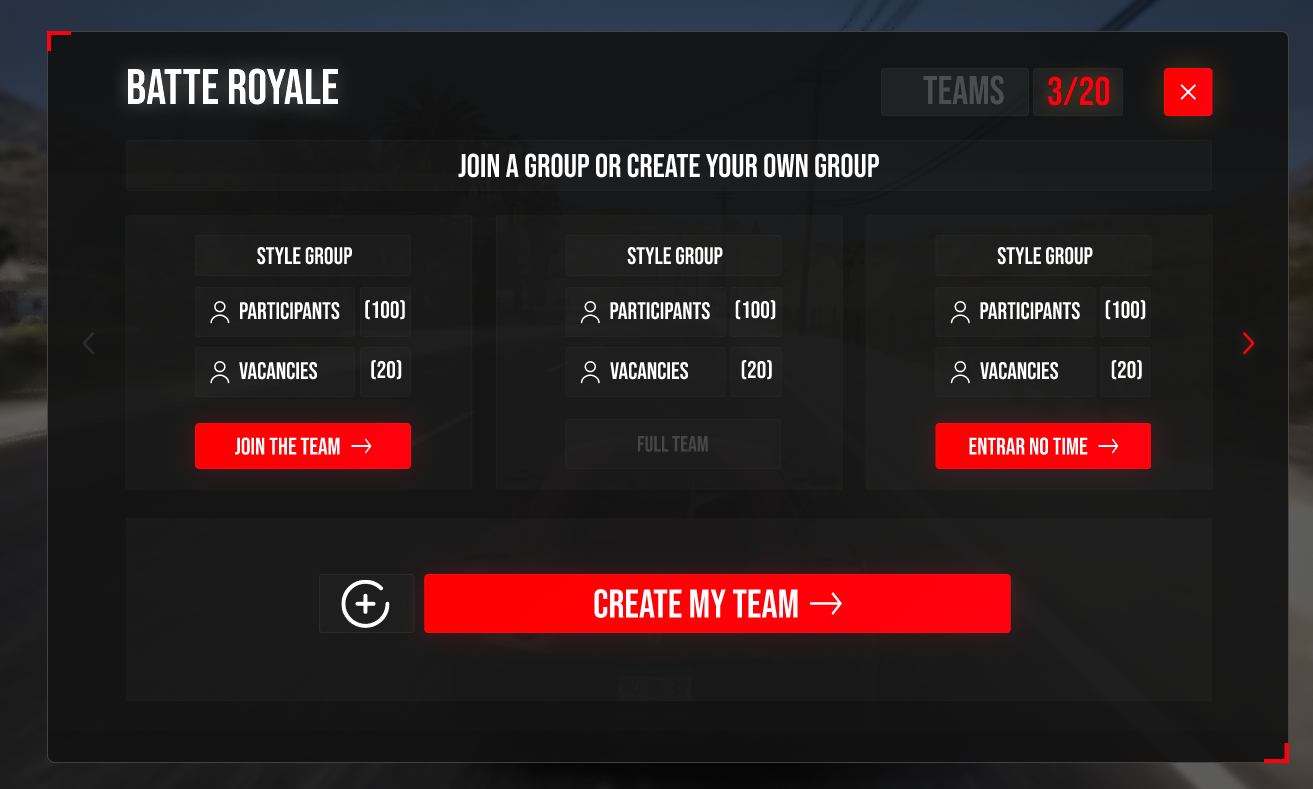 After choosing the Battle Royale event, simply create your team or join someone else's team.